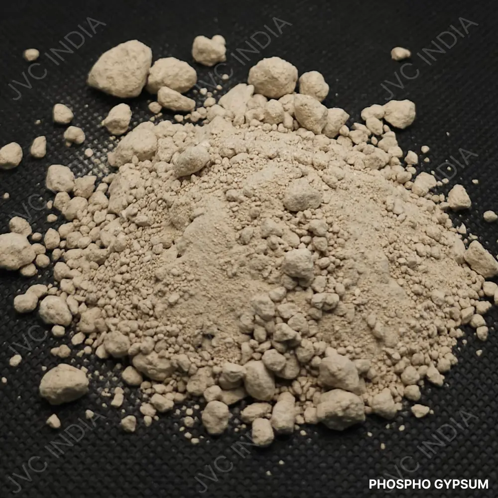 Phospho Gypsum is a by-product generated during the production of phosphoric acid from phosphate rock. It primarily consists of calcium sulfate dihydrate (CaSO₄·2H₂O) and is valued for its calcium and sulfur content. Phospho Gypsum is widely used in construction, cement manufacturing, agriculture, and soil conditioning applications, where it improves material performance, soil structure, and nutrient availability while supporting sustainable reuse of industrial by-products.